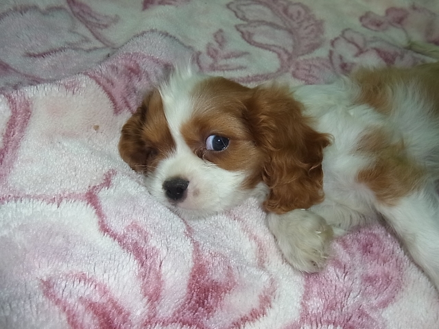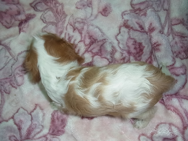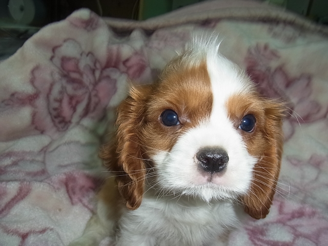 | コメント | 父親 ブレンハイム 母親 ブレンハイム 頭にクセ毛がありウルトラマンです。 一時陰にいましたが、また帰ってきました。 5頭兄妹の一番チビちゃんで、現在は小ぶりです。(但しペコはありません) キャバリア大好き、もしくは、とても関心をお持ちの方の気軽な問い合わせをお待ちしています。 遠方の方もお気軽にどうぞ。 あまりにも神経質な方は、ご遠慮願います。 |