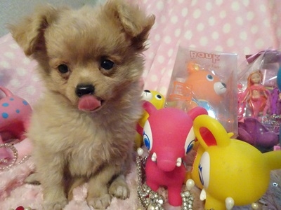 | コメント | お父さん・・チワワ お母さん・・プードル 垂れたお目目が可愛い男の子です 優しいほんわか顔で見ていると とても癒されます お鼻は短く詰まっていて幼い お顔立ちです 毛質はストレートですが 抜け毛はほとんど有りません お顔立ち、体系はチワワよりです 手足の先の毛が白く手袋を している様で可愛らしいです 小さい出べそが有りますが 診断済みです 大人になって2.5㎏前後の 可愛いサイズの仕上がり予想です 健康診断、1回目のワクチン済みです |