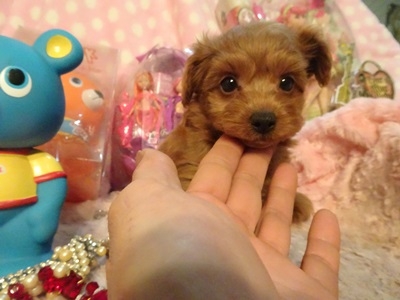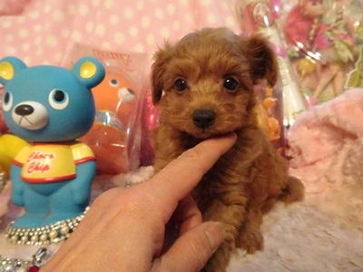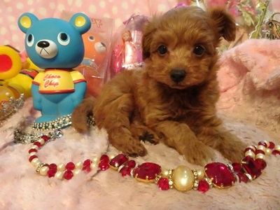 | コメント | お父さん・・チワワ お母さん・・プードル お目目がまんまるでぱっちり した可愛い男の子です 艶の有る綺麗なレッドです 毛質は緩やかにカールが有り ふわっとしています 活発な性格ですが甘えっこな 所も有り可愛らしい性格です 大人になって3㎏以内の 可愛いサイズの仕上がり予想です 動画では緊張していて お耳が後ろに行ってしまっていますが 通常は垂れてお顔に近い所に有ります |
