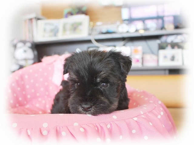 シュナウザーを主力にされているブリーダーさんだと認識しており、ボスちゃんはどうかなあと正直不安でしたがとても可愛く健康的なボスちゃんをいただきました。 掲載されていた写真より実物は想像以上に可愛くて即決し見学させていただいたその日に連れて帰りました。連絡をして、翌日行きますぅって勝手な申し出にも関わらず敏速かつ親切に対応して頂き大満足です。契約に対しても一つ一つ丁寧に説明してくださり、わかりやすかったです。この度は可愛いボスちゃんとのご縁をいただき、本当に有り難うございました。 (大阪府 女性)