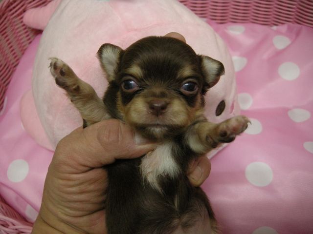 | コメント | お母さん『チコ』ちゃん。チョコレートタン2.5キロ。 お父さん『ポパイ』君。チョコレートクリーム2.3キロ。 小さなチワワちゃんになりますよ❗ 可愛くて小さなチワワちゃんをお探しの方是非お問い合わせ、ご見学してくださいね❗ 可愛くて小さな自信ありのチワワちゃんです |