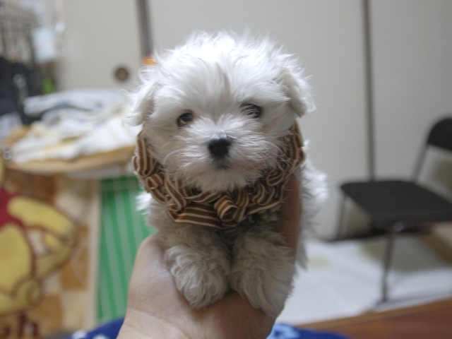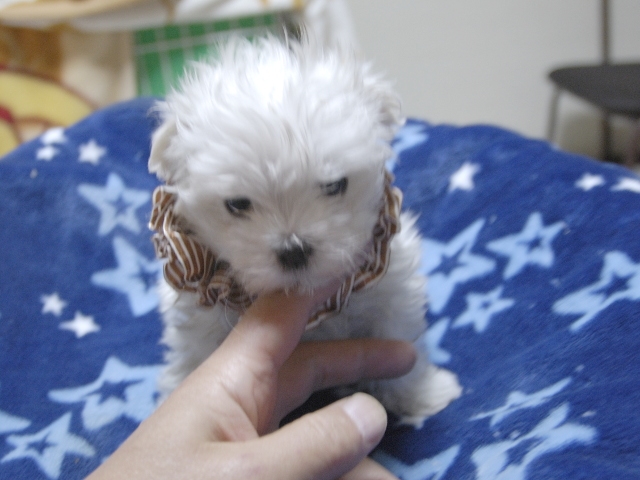 | コメント | 2人兄弟のかわいい男の子です。 お父さんはビアンコ君、お母さんはシロンちゃんです。(茶リボン君) ぜひご見学にお越しください。 見てびっくりのかわいさです! 現時点では欠点は見当たりません。 |