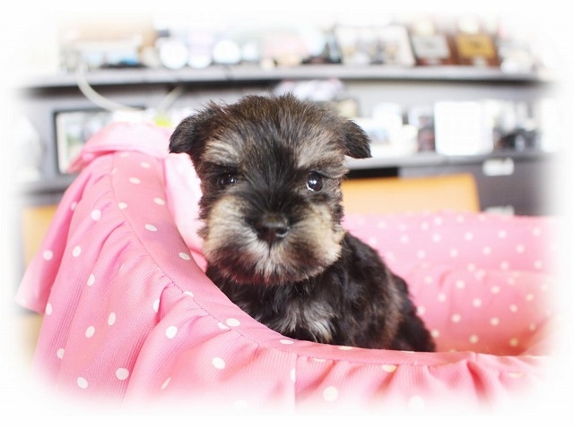 シュナウザーを主力にされているブリーダーさんだと認識しており、ボスちゃんはどうかなあと正直不安でしたがとても可愛く健康的なボスちゃんをいただきました。 掲載されていた写真より実物は想像以上に可愛くて即決し見学させていただいたその日に連れて帰りました。連絡をして、翌日行きますぅって勝手な申し出にも関わらず敏速かつ親切に対応して頂き大満足です。契約に対しても一つ一つ丁寧に説明してくださり、わかりやすかったです。この度は可愛いボスちゃんとのご縁をいただき、本当に有り難うございました。 (大阪府 女性)
