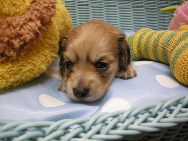 イエローのカニヘンダックスの女の子を探していました。広島から見学に行きましたが、親切に対応してくださいました。可愛さは間違えなしでお迎えして1週間ですがとても元気な子です。トイレのしつけも最初からできていてゲージの中のシートの上でしてくれています。また2匹目飼うときはよろしくお願いします。(広島県 男性)