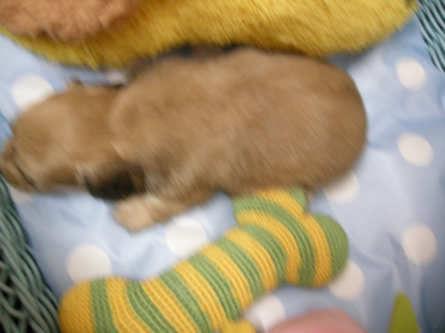 この度は可愛いカニンヘンダックスの女の子を譲っていただきありがとうございます。濱田さんのところからのお迎えは2頭目で、可愛さは初めの子でわかりすぎるほどわかっていたので絶対可愛くなること間違いなしで決めさせていただきました。 どんなことでも相談してくださいねと言う心強い言葉や、可愛い動画を送っていただいたりと本当によくしていただけました。 ワンちゃんは初日からアイコンタクトばっちり、よく食べ、よく寝て、元気いっぱいです。 家にきて1週間、先住犬と遊びながら元気に成長中です。 またよろしくお願いします。(大阪府 女性)
