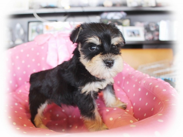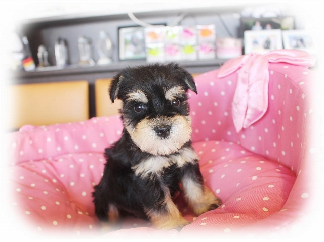 シュナウザーを主力にされているブリーダーさんだと認識しており、ボスちゃんはどうかなあと正直不安でしたがとても可愛く健康的なボスちゃんをいただきました。 掲載されていた写真より実物は想像以上に可愛くて即決し見学させていただいたその日に連れて帰りました。連絡をして、翌日行きますぅって勝手な申し出にも関わらず敏速かつ親切に対応して頂き大満足です。契約に対しても一つ一つ丁寧に説明してくださり、わかりやすかったです。この度は可愛いボスちゃんとのご縁をいただき、本当に有り難うございました。 (大阪府 女性)