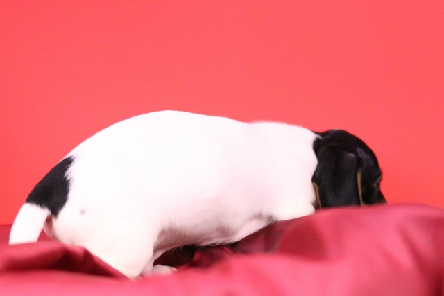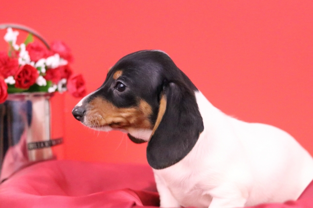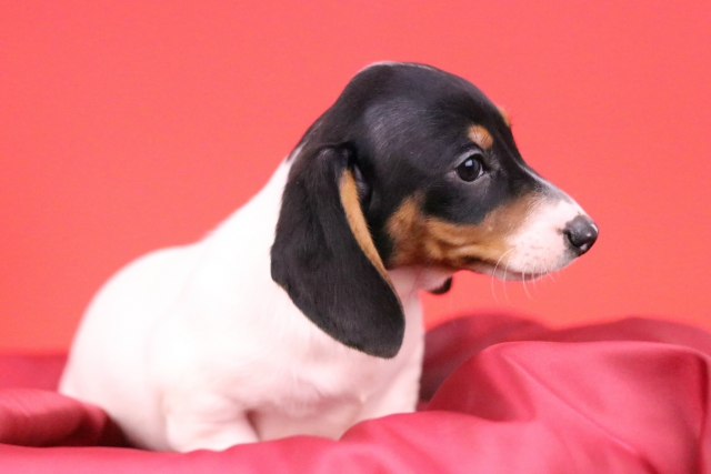 ミニチュア・ダックスフンド(スムース) ブラックタン パイボールド ♂(男の子) 愛知県【 ブリーダーズ 】
