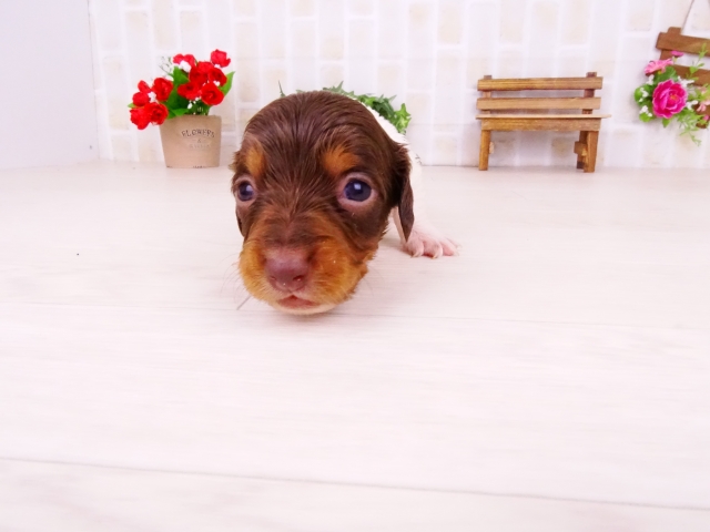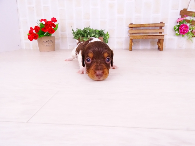 ミニチュア・ダックスフンド(ロング) チョコタン パイボールド ♂(男の子) 愛知県【 ブリーダーズ 】