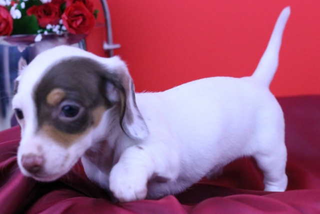 ミニチュア・ダックスフンド(スムース) チョコタン パイボールド ♀(女の子) 愛知県【 ブリーダーズ 】