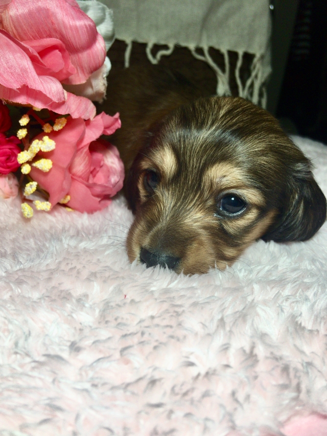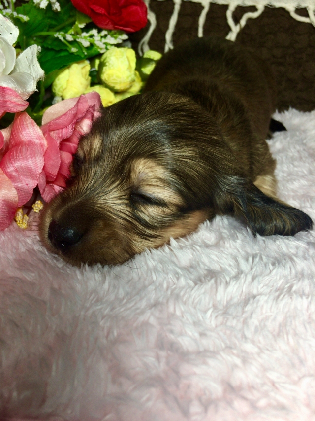 ミニチュア・ダックスフンド(ロング) シェーデットレッド ♀(女の子) 香川県【 ブリーダーズ 】