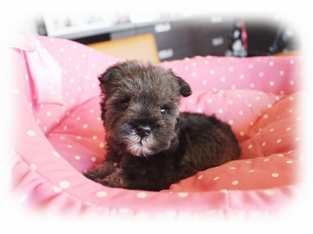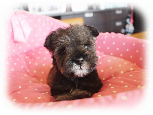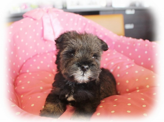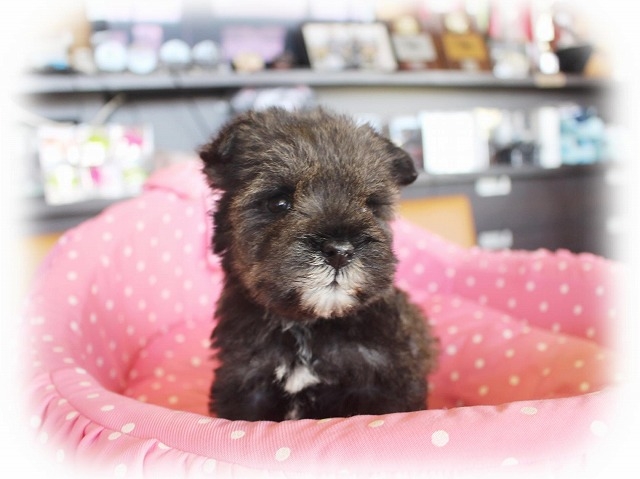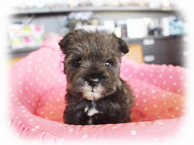 シュナウザーを主力にされているブリーダーさんだと認識しており、ボスちゃんはどうかなあと正直不安でしたがとても可愛く健康的なボスちゃんをいただきました。 掲載されていた写真より実物は想像以上に可愛くて即決し見学させていただいたその日に連れて帰りました。連絡をして、翌日行きますぅって勝手な申し出にも関わらず敏速かつ親切に対応して頂き大満足です。契約に対しても一つ一つ丁寧に説明してくださり、わかりやすかったです。この度は可愛いボスちゃんとのご縁をいただき、本当に有り難うございました。 (大阪府 女性)