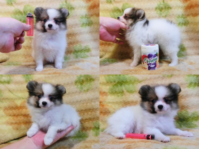 | コメント | ☆小ぶり!!絶対おすすめです!!☆ホントめちゃカワイイ女の仔♪ グッと詰まったスタイルに短いお鼻でまん丸お顔が超キュート!! 毛質最高もっこもこ!!お顔は薄めの茶色他ほぼ白で綺麗ですよ^^ お顔の黒い被毛は成長と共に抜けて大部分無くなると思います☆ のんびりとした優しい性格で初めての方にでも飼い易い仔です^^ 小さくてもとっても元気テーカップ君たちと仲良く遊んでます♪ 生後90日の体重は約980g成犬予想体重2kgくらいだと思います!! 身体のバランスが良くしっかりした硬い胴で骨量多い丈夫な仔☆ 現状噛合せや骨格・関節形成など欠点の心配はありません!! 離乳も済み食欲旺盛でドライでカリカリ!!いつでもお引き渡しOK♪ 素敵なご家族様からのお問い合わせをお待ちしております^^ 【その他諸費用】 6種ワクチン接種費用:6千円【税・画像入証明書付・健康診断込】 ※お迎えの場合で【生体代金】+【ワクチン接種費用】のみです。 ●血統書登録団体:JKC(※3ヵ月以上要す事もあります) |
