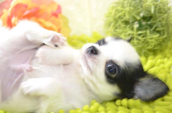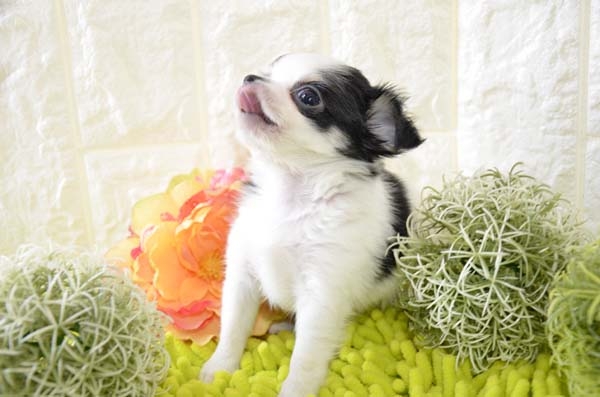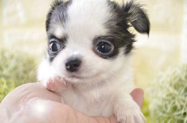 チワワ(ロング) ホワイト&ブラック(パーティ) ♂(男の子) 大阪府【 ブリーダーズ 】