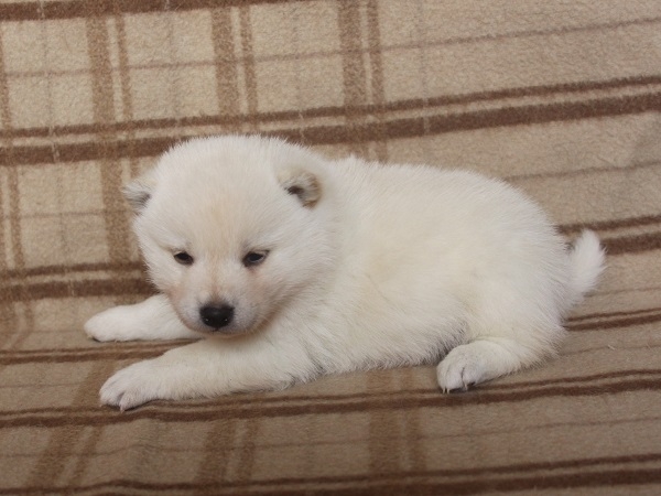 | コメント | 白はとても珍しい毛色です。鼻も黒くぽっちゃりとして可愛い女の子です。 お母さんは面倒見がよく、すくすくと育っています。 お父さんは、がっしりとしたイケメンの黒柴です。 見学OKです。 |