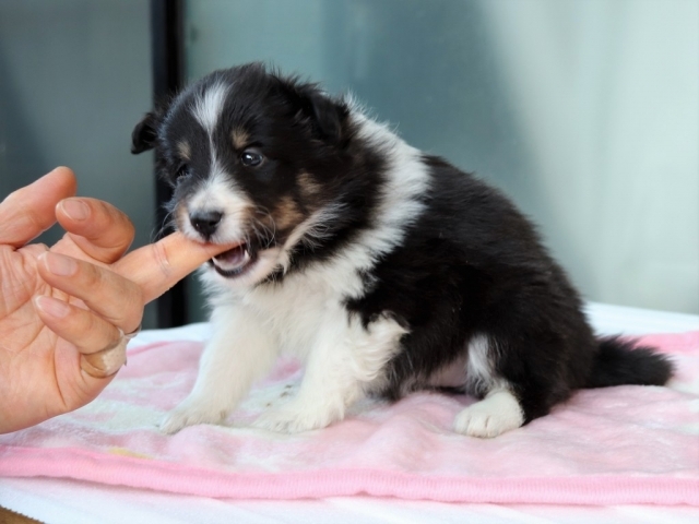ネットブリーダーズを拝見し、バイブルーで青い目の子犬「銀くん」に一目ぼれしました。また、平山ブリーダー様の口コミがとても良かったこともあり、不安なく連絡をさせていただきました。お問い合わせ後すぐに丁寧な返信をいただき、見学の日程もスムーズに決まりました。 実際に伺うと、かわいいたくさんのシェルティちゃん達に迎えられ、たくさんの質問にも丁寧に答えてくださり、大変安心しました。お迎えした銀くんは、最初の1日はおとなしく心配になるほどでしたが、2日目からは甘えたり鳴いたりと元気を取り戻し、とても可愛い姿を見せてくれています。 平山ブリーダー様の元で大切に育てられてきたことがよく分かり、銀くんをお迎えできて心から良かったと思っています。 素敵なご縁をありがとうございました。(福島県 女性)