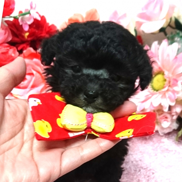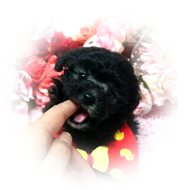 ブラックの男の子のトイプードルを探していました。こちらで見つけ問い合わせをしたところ、永谷ブリーダーからすぐに連絡があり、こちらのいろいろな質問にも丁寧にお答えいただいたので、本当に安心してピースを迎える事ができました。空港にてケースの中の小さいピースに感動と感謝で家族全員泣いてしまいました(笑)この子に会えて心から良かったと思える瞬間でした。2人の子ども達とも仲良く遊びまわり、よく食べよく寝る元気な末っ子です(笑)みんなを笑顔にしてくれるピースが楽しく幸せに暮らせるように、大切に成長を見守っていきます。本当にありがとうございました。(大阪府 女性)