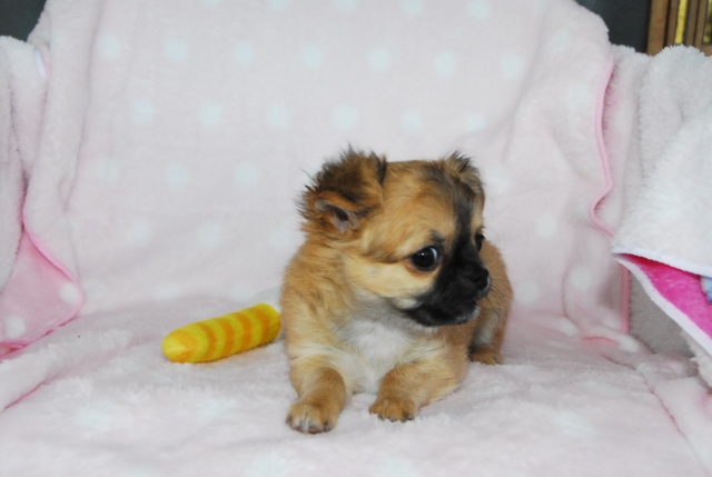 | コメント | 引き渡しは、2018年1月下旬の予定です。1回目のワクチン接種後となります。 (母犬と十分に過ごした状態でお引き渡しを希望していますので、ご理解お願いします) 2017年12月26日: 体重446g。 撮影時ゲージの外では緊張の為か少し震えていますが、育児室では、兄弟で遊んでいます 顔周りの黒の被毛は、成長と共に薄くなります。 2018年1月2日: 体重495g。 兄弟の中で一番最初に好奇心が芽生えています。もう少しするとケージの外でも自由に歩くようになると思います。 顔周りの黒の被毛の一部に白色の被毛が見え始めました 2018年2月9日 体重が1kgになりました。 食欲も旺盛で、少し前までは10分くらいかけて少しづつ食べていたのが数分で完食します。 少し臆病な面もあるようで小さな音に敏感に反応にます。 それでも、離れた場所にいる時「おいで」と声をかけると足元に戻ってきます。 2018年1月9日: 体重594g。 離乳食も終わり、母犬と同じフードを食べる様になりました。 ケージの中では活発に遊んでいますが、ケージの外はまだ慣れていないので様子を伺いながら行動範囲を広げています。 しばらくすると慣れてケージの外でも歩き回ると思います。 2018年1月17日 体重が747gになりました。 ケージの外でも歩き回る様になりました。 おもちゃにも興味を持ち時々遊んでいます。 2018年1月24日 体重が820gになりました。 1回目ワクチン接種も終わり、いつでも引き渡し可能です。 ケージの外でも走り回る様になり、撮影は厳しくなりましたので、椅子の上で撮影です。 狭い場所が好きな様で、座っていると股の間に入ってきます。 写真ではまだ分かりずらいですあ、鼻のあたりの被毛に少し白色が生えてきました。 母犬、父犬も白色なので最終的には白色の被毛になると思います。 2018年2月2日 体重が950gになりました。 日中は、母犬と離す時間を設けて一人で留守番の練習です。 人気が無いと静かで寝ているか、遊んでいます。 |