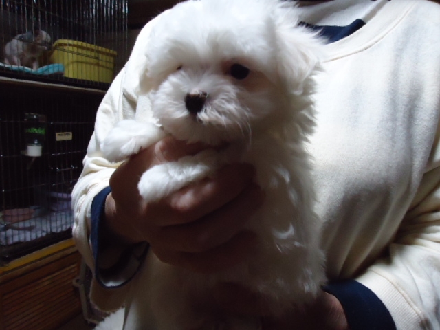 この度ご縁がありまして村島ブリーダーさんから可愛いマルチーズの男の子を譲って頂きました。犬を飼うことは初めてだったのですが2度ほど見学し、アドバイスも頂き、安心して子犬を迎えることができました。何かあれば電話でいつでも相談にのって下さるとのことで心強いです。子犬もとても元気でおトイレもすぐに覚えてとってもいい子です。ありがとうございました。(栃木県 女性)