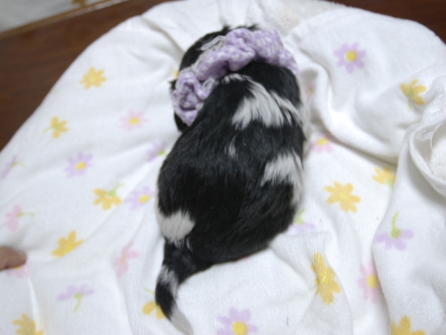 | コメント | お父さんはJKCチャンピオンの家重君、お母さんはチャンピオン直子ファンシーちゃんから生れたキュートな女の子です。(紫リボンちゃん) 健康状態は、問題有りません。 すくすく育っています。 |