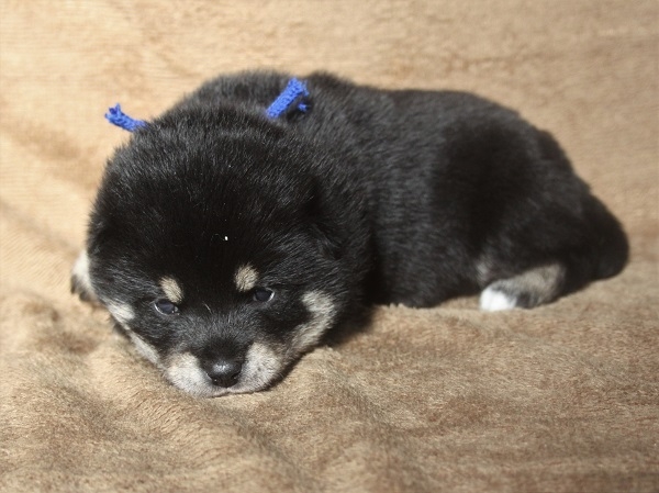 | コメント | ぽっちゃりとして可愛い男の子です。青色のリボンを付けています。 お母さんは面倒見がよく、すくすくと育っています。 お父さんは、がっしりとしたイケメンの黒柴です。 年末からご見学OKです。 |