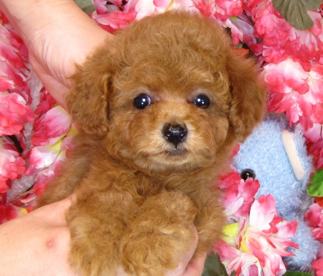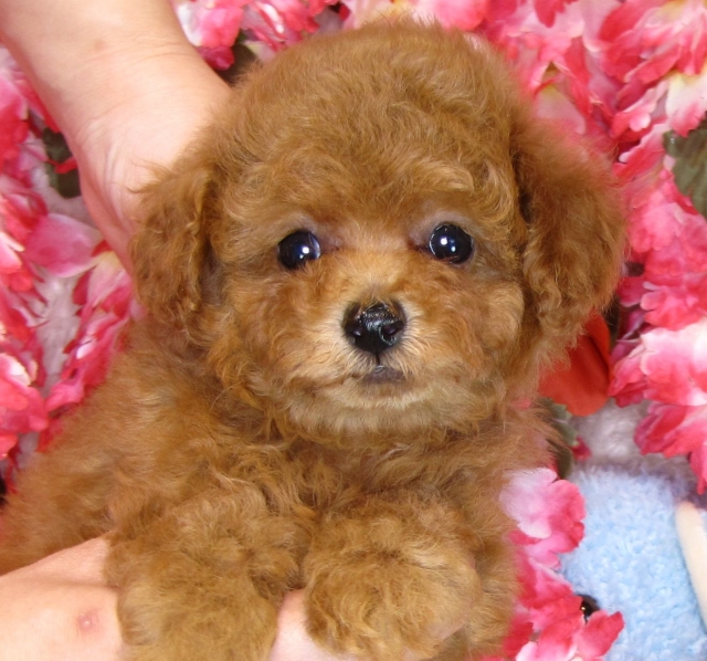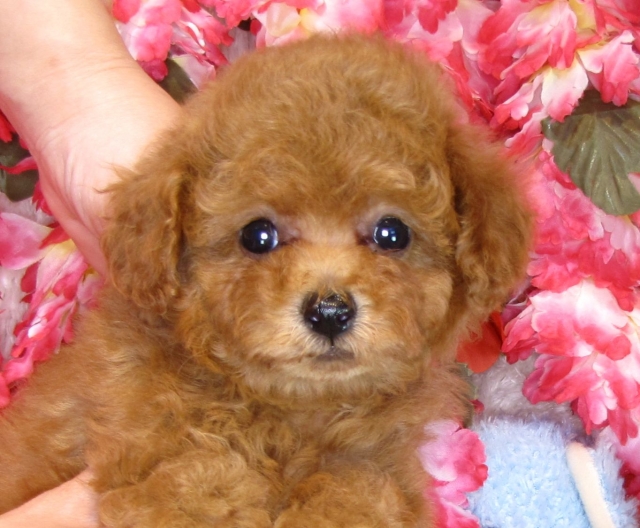 | コメント | 濃いレッド、おとなしい性格の女の子です。 濃いレッドで毛量が多くて巻き巻きの毛質になります。 しっかり体型でおとなしい性格のかわいい女の子です。 生後58日の体重は680グラム。 成犬時の予想体重は3キロ~3.5キロ前後。 こがらでもがっしりした体形で、アウトドアで走り回って遊べます。 巻き巻きの毛質で 将来はテディーベアが似合うかわいい子になります。 おとなしくてやさしい性格ですので飼いやすいと思います。 シャンプーなどで使用する、子犬用スリッカーブラシもサービスしております。 各種カードもご利用できます。 父親 : 2キロ レッド 母親 : 3.5キロ レッド 現在たくさん生まれて25匹ほどおりますので、ぜひぜひ見学においでください。 最近トイプードルで目が白濁して失明に至る、遺伝性のPRAが流行っていますが、うちの犬舎では一件も出てませんのでご安心ください。 うちの子犬は全員トイレのしつけ済み。見学に来た人は「ちゃんとトイレでしてるーっ。おりこうだねー。」と皆さん感心していらっしゃいます。 もちろんこの子たちもできています。 ペットショップなどで見かける、ウンチの上で平気で寝ているような子犬を飼うと、おうちでのトイレのしつけはかなり難しくなります。 犬は心のパートナー。 「吠えない、噛まない、かじらない。」は室内犬として絶対条件です。 先日「別のペットショップでトイプードル飼って1ヶ月。」 という奥様が飛び込みで来られましたが、「家中のものを噛んでソファーもテーブルの足もじゅうたんも、みんなボロボロにされて、最近は奥様の手も噛むようになってきて、怖くなってきた。」とたいへんお困りの相談に来られました。 その場でしつけ方のお話をさせていただきまして、5日後には子犬を連れてきて「やっと抱っこして出られるようになって、家の中でもいい子になりました。」とお礼に来られました。 子犬の性格にもよりますが、このような暴れん坊になってしまうこともあります。 絶対にこのような暴れん坊の犬に育ててはいけません。 うちでは基本的に子犬は必ず1匹ずつゲージに入れて展示しています。 2匹ずつケージに入れた状態で皆様のご家庭に1匹だけで飼われたときに、寂しさから夜中でもキャンキャン泣き続ける子犬がおりました。 そこで今では必ず1匹だけでケージに入れて置くようにしております。 これで「一人で生活する。」 ということに慣れた状態でお引渡しになりますので、皆様のお宅でキャンキャン泣いて騒がせることはほとんどなくなりました。 家庭や一般社会の中でみなさんにほめられる、すばらしい犬。 最高にマナーの良い犬に育てられるよう、お引き渡しの前には必ず1時間ぐらい 「子犬の飼い方しつけ方」 のお話をさせていただきます。 犬の気持ちや本能が理解できて、必ずいい子に育てられます。 ご家族全員でおいでいただけましたら幸いです。 場所は簡単です! 茨城県龍ヶ崎市。お車の方は常磐高速→ 圏央道2つ目(牛久阿見龍ヶ崎)を降りたらどこも曲がらず一直線に8~9キロ。左に看板が見えてきます。 東京から1時間ちょっと。4車線の大通りに面しているのでカーナビ一発で来ます。 電車の場合は常磐線佐貫駅東口。決まらなくても駅まで必ず送迎しますのでご連絡ください。 見学ご希望があっても、別の方からご予約金の振込みなどがあった場合は、そちらに決まってしまう場合があります。 あらかじめご了承ください |