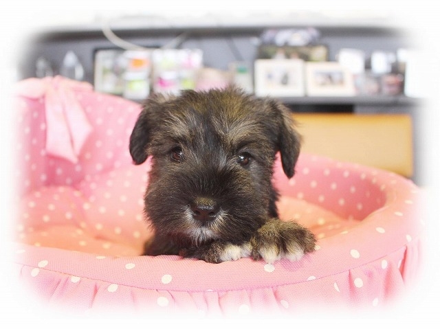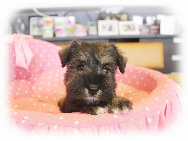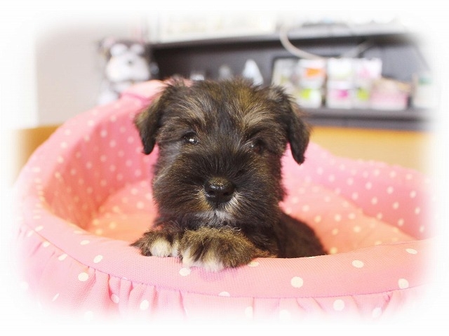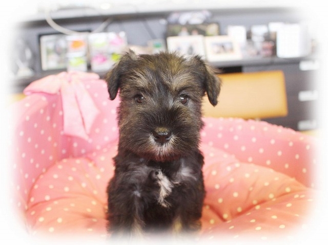 シュナウザーを主力にされているブリーダーさんだと認識しており、ボスちゃんはどうかなあと正直不安でしたがとても可愛く健康的なボスちゃんをいただきました。 掲載されていた写真より実物は想像以上に可愛くて即決し見学させていただいたその日に連れて帰りました。連絡をして、翌日行きますぅって勝手な申し出にも関わらず敏速かつ親切に対応して頂き大満足です。契約に対しても一つ一つ丁寧に説明してくださり、わかりやすかったです。この度は可愛いボスちゃんとのご縁をいただき、本当に有り難うございました。 (大阪府 女性)