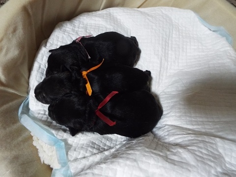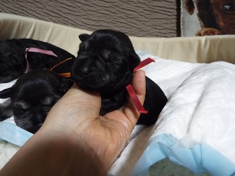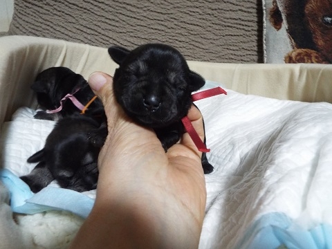 | コメント | 父親・・・INT.CH孫、ソルト&ペッパ- 母親・・・ソルト&ペッパ-、小ぶり 可愛いお顔のママから元気な3姉妹が誕生しました! 現時点で3頭共大きさ、体重はほぼ同じ位です。 後1週間程で目があきますので、開いたら画像を再度UP致します。 目が開くと可愛さ満点です! 生後45日で初回ワクチン接種、健康診断、検便など獣医でしてからのお渡しになります。 見学大歓迎! 今なら血統書名に呼び名をお付け出来ます。 お気軽にご質問、お問合せ下さい。 |
