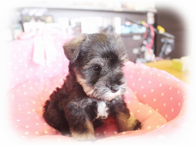 シュナウザーを主力にされているブリーダーさんだと認識しており、ボスちゃんはどうかなあと正直不安でしたがとても可愛く健康的なボスちゃんをいただきました。 掲載されていた写真より実物は想像以上に可愛くて即決し見学させていただいたその日に連れて帰りました。連絡をして、翌日行きますぅって勝手な申し出にも関わらず敏速かつ親切に対応して頂き大満足です。契約に対しても一つ一つ丁寧に説明してくださり、わかりやすかったです。この度は可愛いボスちゃんとのご縁をいただき、本当に有り難うございました。 (大阪府 女性)