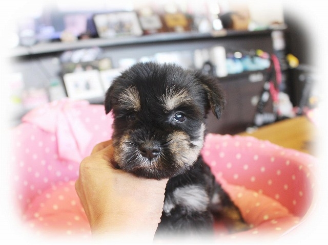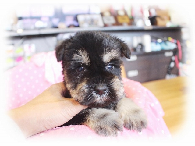 シュナウザーを主力にされているブリーダーさんだと認識しており、ボスちゃんはどうかなあと正直不安でしたがとても可愛く健康的なボスちゃんをいただきました。 掲載されていた写真より実物は想像以上に可愛くて即決し見学させていただいたその日に連れて帰りました。連絡をして、翌日行きますぅって勝手な申し出にも関わらず敏速かつ親切に対応して頂き大満足です。契約に対しても一つ一つ丁寧に説明してくださり、わかりやすかったです。この度は可愛いボスちゃんとのご縁をいただき、本当に有り難うございました。 (大阪府 女性)