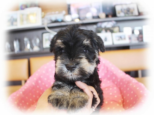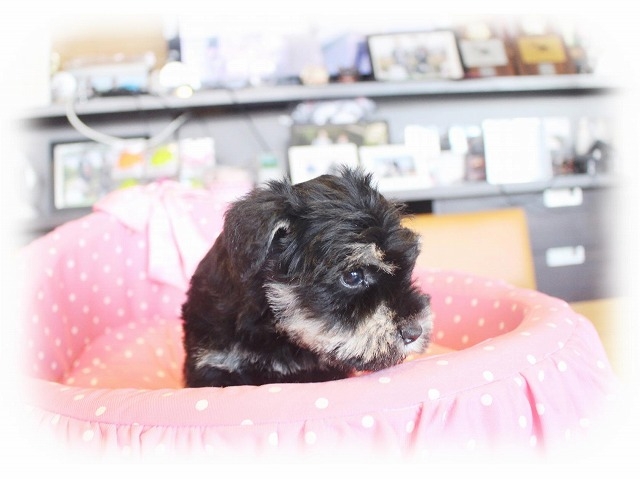 シュナウザーを主力にされているブリーダーさんだと認識しており、ボスちゃんはどうかなあと正直不安でしたがとても可愛く健康的なボスちゃんをいただきました。 掲載されていた写真より実物は想像以上に可愛くて即決し見学させていただいたその日に連れて帰りました。連絡をして、翌日行きますぅって勝手な申し出にも関わらず敏速かつ親切に対応して頂き大満足です。契約に対しても一つ一つ丁寧に説明してくださり、わかりやすかったです。この度は可愛いボスちゃんとのご縁をいただき、本当に有り難うございました。 (大阪府 女性)