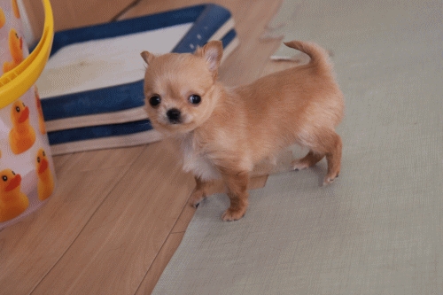可愛過ぎる仔犬ちゃんに一目惚れし急だったのにも拘らず快くお邪魔させて頂きました。犬舎も大変綺麗でパパ犬ママ犬にも対面出来てブリーダー様のチワワちゃんに対する愛情をとても感じました。譲って頂いた仔犬ちゃんは自宅に到着後、先住犬が居ても物怖じする事無くフードをパリパリと食べトイレを外す事もなく出来元気に遊んで過ごしてました。可愛い仔犬ちゃんを譲って頂いて有難う御座いました。これからも時折成長過程を報告しますね。(静岡県 女性)
