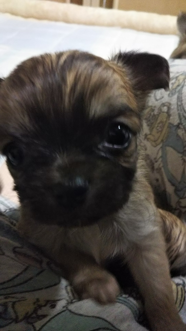 | コメント | 毛色 : パパ犬 レッドセーブル ママ犬 トライカラー☆ホワイトベース 体重 : パパ ママ 共 2.1㎏ 称号 : ママ JKC CH. / AMダータンの娘 パパ犬の 父 JKC INT ENG AM HUN CH. / WVW OS 祖父 ENG CH. / OS 祖母 JKC CH. 母 JKC CH. 曾祖父 ENG CH. ママ犬の 父 AMグランドCH. 祖父 JKC INT AM / WW 母 祖母 JKC CH. 祖父 JKC INT ING AM HUN CH. / WVW OS 渋い割にはお人よし。 お座りも何回目かにはそれらしくなってきます。 2/18 440g です。 被毛がするするで手から滑り落ちそうです。 とっても活発な四兄弟に喜ばれそうな物を探すのが目下の楽しみです。 100%の変わらぬ愛情で育ててくださる方とのご縁を心待ちにして居ります。 生後80日以内に契約が済みましたら、血統書にお好きな名前を付けて頂けます。 可愛いキャリーバッグにてお引渡し致しますので身軽にいらしてください。 生後9か月頃ご希望に依り、未熟者ですが無料にてグルーミンの仕方ご伝授致します。 お誕生月にお連れ頂けましたら、1回シャンプー サービス致します。 |