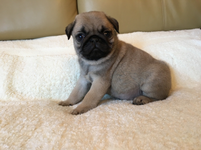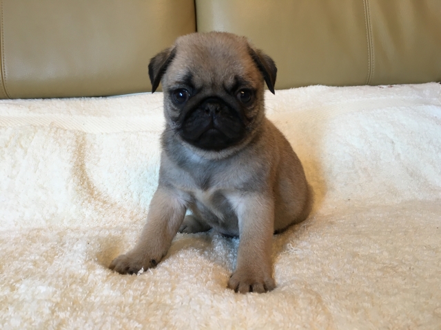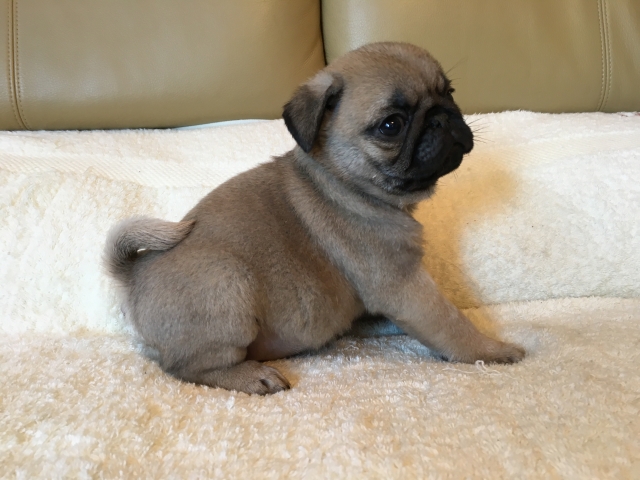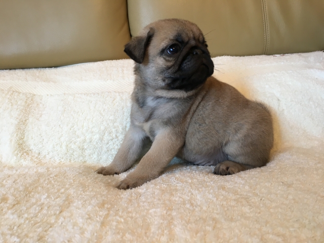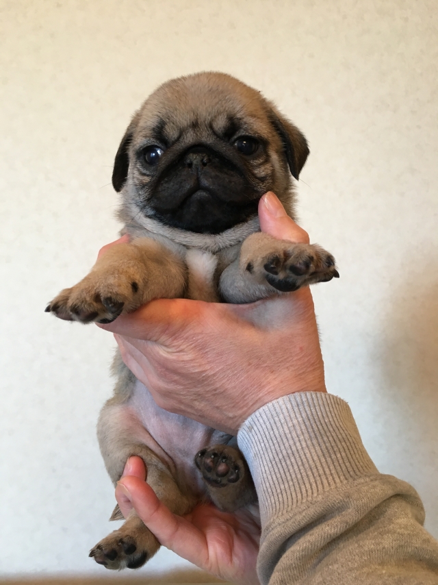 パグの飼育歴は30年以上になります。今年親の代から買っていた 黒パグを亡くしてから家を埋め尽くしているパググッズを見るたびに いつか新しい仔を迎えたいと思うようになりました。 北関東でブリーダーさんを探しているうちに木村様を知り、見学、購入の運びとなりました。 このたび性格も大変おおらかな素晴らしい仔犬をお譲りいただき大変感謝しております。 (茨城県 男性)