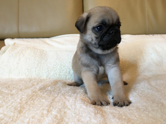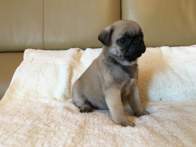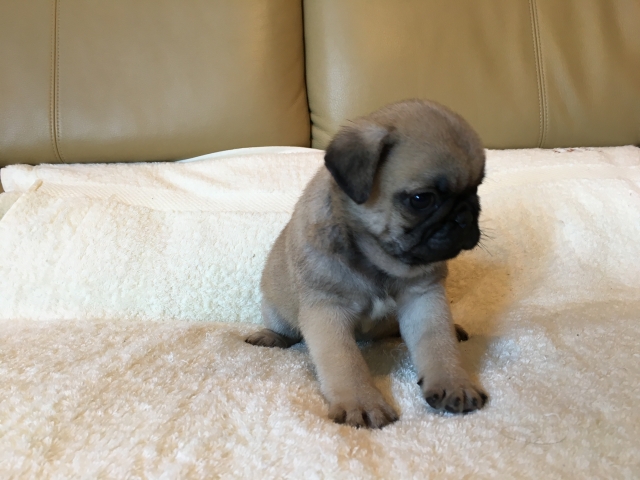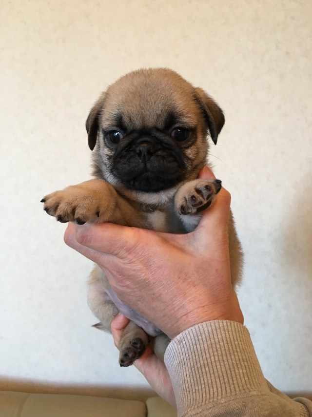パグの飼育歴は30年以上になります。今年親の代から買っていた 黒パグを亡くしてから家を埋め尽くしているパググッズを見るたびに いつか新しい仔を迎えたいと思うようになりました。 北関東でブリーダーさんを探しているうちに木村様を知り、見学、購入の運びとなりました。 このたび性格も大変おおらかな素晴らしい仔犬をお譲りいただき大変感謝しております。 (茨城県 男性)