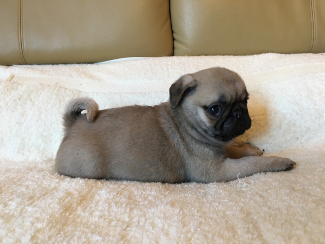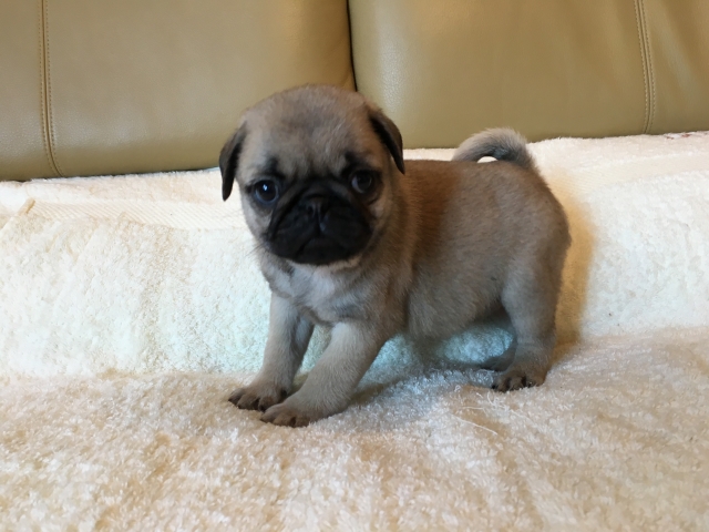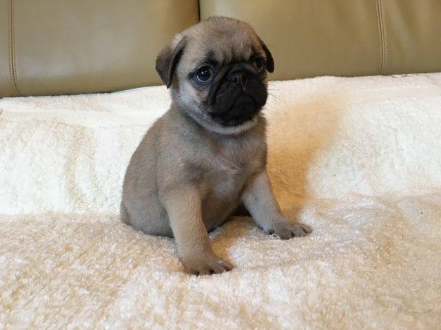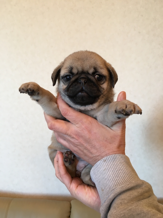 パグの飼育歴は30年以上になります。今年親の代から買っていた 黒パグを亡くしてから家を埋め尽くしているパググッズを見るたびに いつか新しい仔を迎えたいと思うようになりました。 北関東でブリーダーさんを探しているうちに木村様を知り、見学、購入の運びとなりました。 このたび性格も大変おおらかな素晴らしい仔犬をお譲りいただき大変感謝しております。 (茨城県 男性)