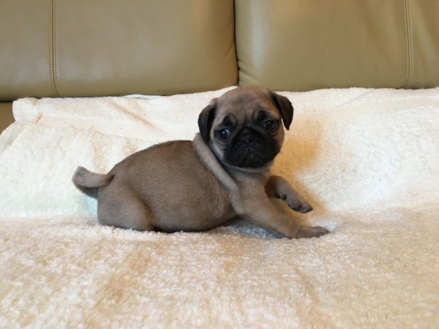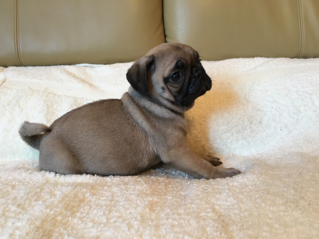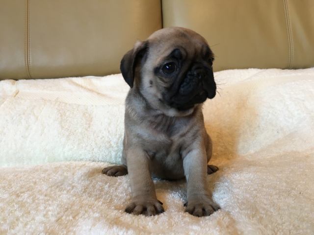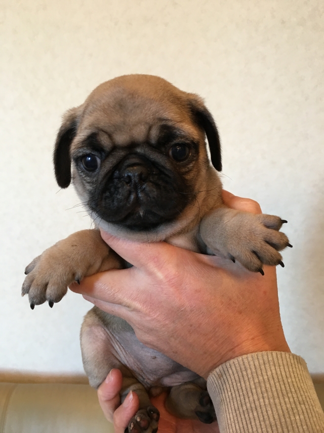 パグの飼育歴は30年以上になります。今年親の代から買っていた 黒パグを亡くしてから家を埋め尽くしているパググッズを見るたびに いつか新しい仔を迎えたいと思うようになりました。 北関東でブリーダーさんを探しているうちに木村様を知り、見学、購入の運びとなりました。 このたび性格も大変おおらかな素晴らしい仔犬をお譲りいただき大変感謝しております。 (茨城県 男性)