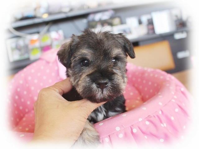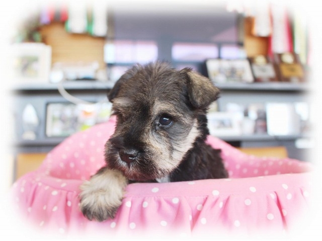 シュナウザーを主力にされているブリーダーさんだと認識しており、ボスちゃんはどうかなあと正直不安でしたがとても可愛く健康的なボスちゃんをいただきました。 掲載されていた写真より実物は想像以上に可愛くて即決し見学させていただいたその日に連れて帰りました。連絡をして、翌日行きますぅって勝手な申し出にも関わらず敏速かつ親切に対応して頂き大満足です。契約に対しても一つ一つ丁寧に説明してくださり、わかりやすかったです。この度は可愛いボスちゃんとのご縁をいただき、本当に有り難うございました。 (大阪府 女性)