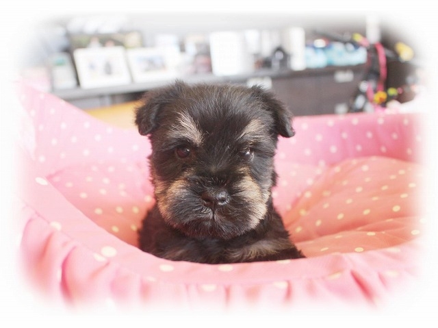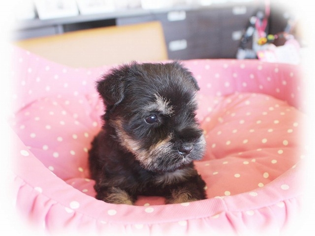 シュナウザーを主力にされているブリーダーさんだと認識しており、ボスちゃんはどうかなあと正直不安でしたがとても可愛く健康的なボスちゃんをいただきました。 掲載されていた写真より実物は想像以上に可愛くて即決し見学させていただいたその日に連れて帰りました。連絡をして、翌日行きますぅって勝手な申し出にも関わらず敏速かつ親切に対応して頂き大満足です。契約に対しても一つ一つ丁寧に説明してくださり、わかりやすかったです。この度は可愛いボスちゃんとのご縁をいただき、本当に有り難うございました。 (大阪府 女性)