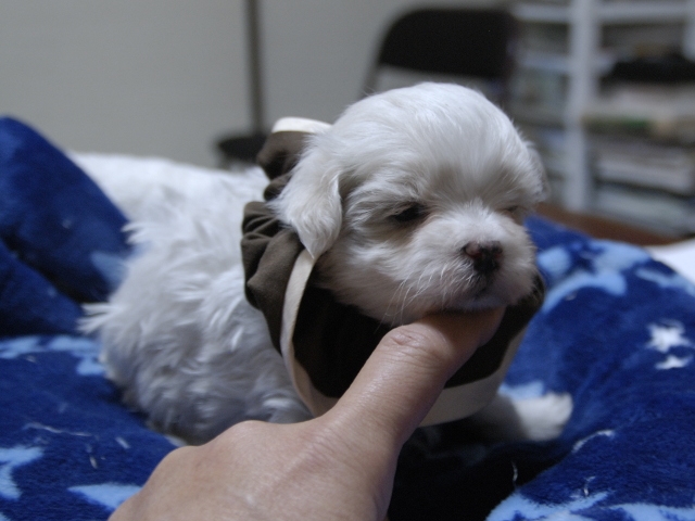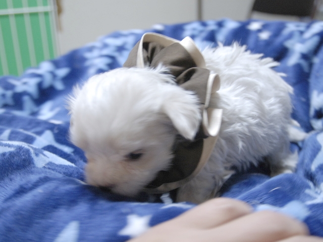 | コメント | 3人兄妹の男の子です。 お父さんはビアンココです。 お母さんはコロンちゃんです。(茶リボン君) ぜひご見学にお越しください。 見てびっくりのかわいさです! 現時点では欠点は見当たりません。 |