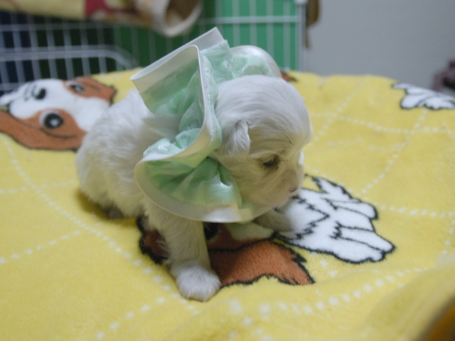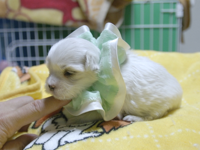 | コメント | 3人兄妹の女の子です。 お父さんはビアンココです。 お母さんはコロンちゃんです。(緑リボンちゃん) ぜひご見学にお越しください。 見てびっくりのかわいさです! 現時点では欠点は見当たりません。 |