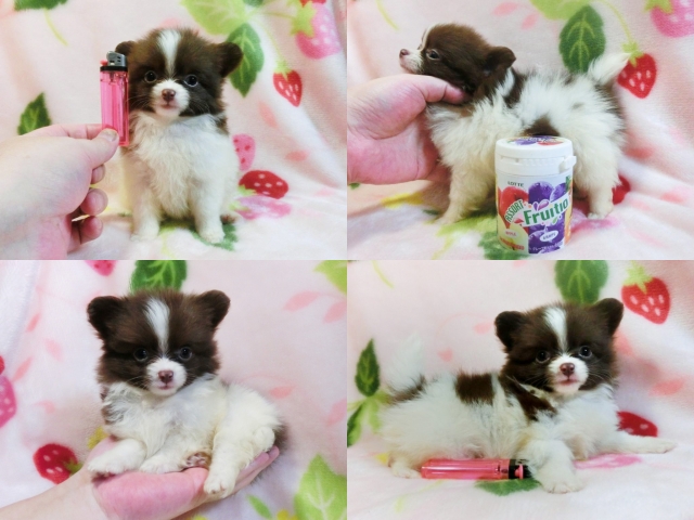 | コメント | ☆極小サイズ!!☆お顔・スタイル・毛量・配色どれも超最高の男の仔♪ ブレーズバッチリまん丸お顔に短いお鼻愛らしい瞳で超絶キュート!! 胴詰まり抜群なスタイルに毛量最高モッコモコ配色もめっちゃ綺麗^^ 極小特有の気の強さが有りそれがまた堪らなく愛らしい仔ですよ☆ 希少なチョコでここまで整った極小ポメちゃんはなかなか出ません!! 小さくてもとっても元気^^ティーカップ君たちと仲良く遊んでます♪ 生後90日の体重は約800g!!成犬予想体重1.8kg未満だと思います!! 身体のバランスが良くしっかりした硬い胴で骨量多い丈夫な仔☆ 現状噛合せや骨格・関節形成など欠点の心配はありません!! 離乳も済み食欲旺盛でドライでカリカリ!!いつでもお引き渡しOK♪ 素敵なご家族様からのお問い合わせをお待ちしております^^ 【その他諸費用】 6種ワクチン接種費用:6千円【税・画像入証明書付・健康診断込】 ※お迎えの場合で【生体代金】+【ワクチン接種費用】のみです。 ●血統書登録団体:JKC(※3ヵ月以上要す事もあります) |