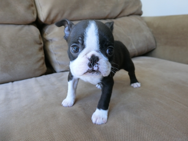 この度は可愛い元気なボストンテリアを譲っていただきありがとうございました。見学の時にいろいろな質問や要望に快く対応してくださいました。お話を聞いていて岩井様が自信をもってブリーディングされていることがよくわかり心強かったです。また不安になり突然電話してわけのわからない質問をしても親切に対応してくださいました。ありがとうございました。早いもので家族の一員となって3ヶ月経過しました。私達夫婦の太陽になってくれているかけがえのないわんちゃんを大切に育てていきたいと思います。(千葉県 女性)