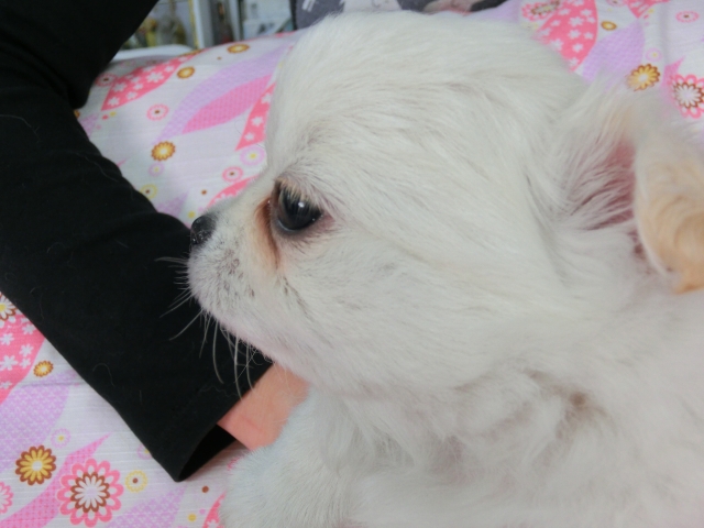 | コメント | 父 アメリカチャンピオン孫 3代祖にインターナショナルチャンピオンが3頭入っている良血統 ショードッグ専門犬舎出身 母アメリカチャンピオン直子 「JKC優秀ブリーダー」のショードッグ専門犬舎出身 成長時の予想体重は2.5~3.5キロ 現在好ましくないかみ合わせ、ヘルニアはありません。欠点が出てきた際は改めてお知らせいたします。 ドワーフタイプのチワワをお探しならお勧めです。 ご見学は大歓迎ですのでどうぞご連絡の上、おいでください。365日年中無休です。 2013年9月1日より「動物の愛護と管理に関する法律」の改正によって、「生体販売時の現物確認・対面販売」が義務規定となりましたので、最低一度は直接犬舎までご来舎いただかなくてはなりません。従いまして今までのようにネットで写真、動画をご覧になっただけではご購入ができなくなりました。これはすべてのブリーダー・ペットショップも例外がありませんので、ご理解、ご協力のほど御願い申し上げます。 手続きに時間がかるため海外への輸出はいたしません。 スタッフの取得資格 (社)JKC 全犬種審査員2名(社)JKC 単犬種パピヨン審査員1名(社)JKC スチュアート1名(社)JKC A級ハンドラー1名 (社)JKC C級ハンドラー1名 (社)日本愛玩動物協会 愛玩動物飼養管理士1級1名 (社)日本愛玩動物協会 愛玩動物飼養管理士2級2名 (学)AIK 認定グルーマーライセンス1名(学)AIK 家庭犬しつけインストラクター1名(社)ICCキャットグルーマーライセンスB級1名 (学)AIK トレーナーライセンス1名 動物の愛護及び管理に関する法律による動物取扱責任者2名 |