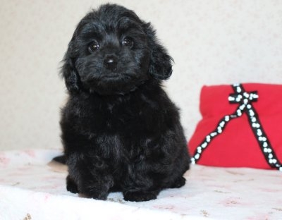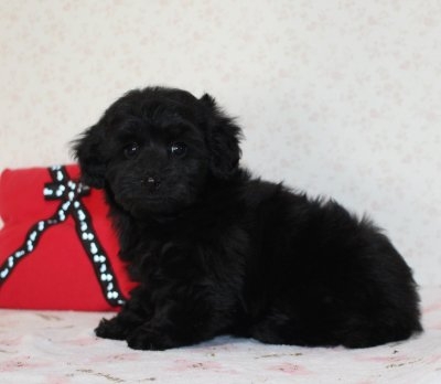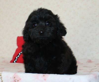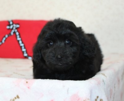 | コメント | ダックスとプードルのミックス ダップーのご紹介です 真っ黒でフワフワモコモコの男の子 タレ耳が可愛く、今後の成長が楽しみです。 パパ カニンヘンダックス 3.5K ママ トイプードル 2.2K 毛足はママのプードルの様にフワフワ長めです。巻きは殆どありません 手足短めはパパのダックスに似ました。 ミスカラーも無く真っ黒一色カラーです。 |