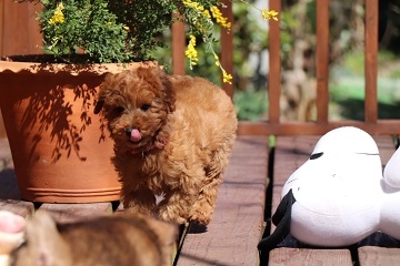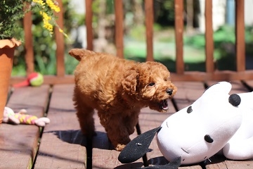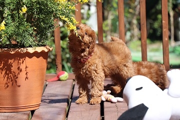 とっても可愛いトイプートルの女の子を譲って頂きました。モコと名前を付けて家族皆で可愛がってます。トイレはしつけ途中とおっしゃっていましたが、ちゃんとトイレまでトコトコ歩いていってした時はビックリしてキチンとしつけをしてくださっていたんだなぁと感激しちゃいました。性格も明るく元気で、先に飼っていたトイプーのお兄ちゃんとも仲良くやれそうです。モコの方が元気で時々お兄ちゃんは逃げ腰になってますけど。(^^;; 本当にこの度はありがとうございました。大切に育てますね。(鹿児島県 女性)