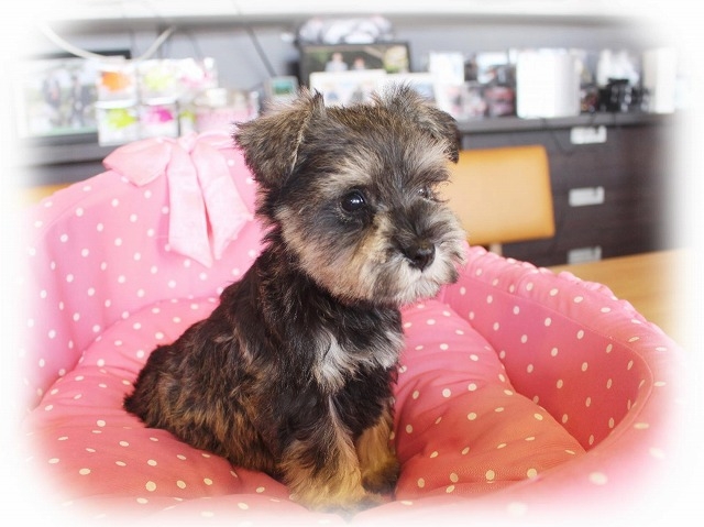 シュナウザーを主力にされているブリーダーさんだと認識しており、ボスちゃんはどうかなあと正直不安でしたがとても可愛く健康的なボスちゃんをいただきました。 掲載されていた写真より実物は想像以上に可愛くて即決し見学させていただいたその日に連れて帰りました。連絡をして、翌日行きますぅって勝手な申し出にも関わらず敏速かつ親切に対応して頂き大満足です。契約に対しても一つ一つ丁寧に説明してくださり、わかりやすかったです。この度は可愛いボスちゃんとのご縁をいただき、本当に有り難うございました。 (大阪府 女性)
