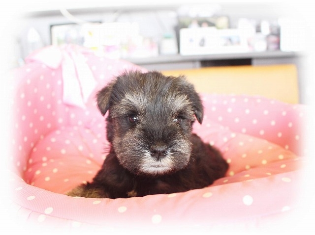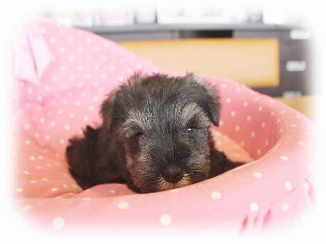 シュナウザーを主力にされているブリーダーさんだと認識しており、ボスちゃんはどうかなあと正直不安でしたがとても可愛く健康的なボスちゃんをいただきました。 掲載されていた写真より実物は想像以上に可愛くて即決し見学させていただいたその日に連れて帰りました。連絡をして、翌日行きますぅって勝手な申し出にも関わらず敏速かつ親切に対応して頂き大満足です。契約に対しても一つ一つ丁寧に説明してくださり、わかりやすかったです。この度は可愛いボスちゃんとのご縁をいただき、本当に有り難うございました。 (大阪府 女性)