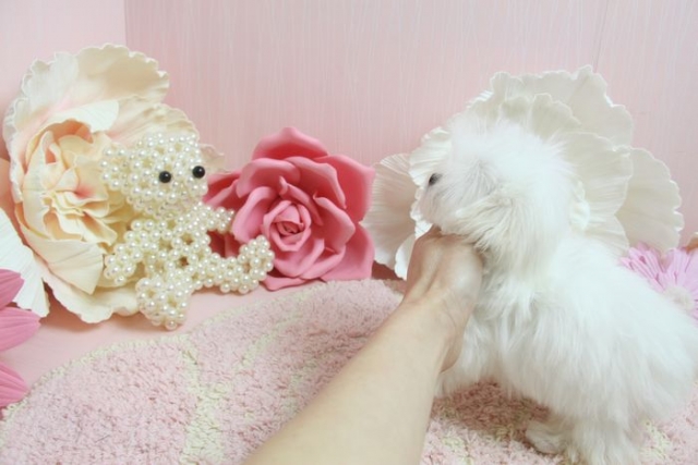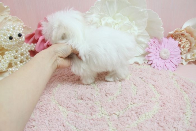 | コメント | 3月1日撮影 ますます可愛くなってきました! アイラインもしっかり入っていて、 色素もまっくろです! お鼻ももちろんどん詰まり! お顔まんまるで とっても可愛いお顔です。 涙やけもなく、綺麗なマルチーズです! 性格はおとなしいめですが、人なつこく可愛い性格です。 3月1日現在 生後101日 で体重520gです。 成犬時予想体重は~1.3kg前後の~超極小サイズ予想です。 父 1.5kg 母1.6kg 2回目のワクチンは接種済みです。 お散歩OKです。 |