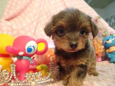 | コメント | お父さん・・チワワ お母さん・・プードル まんまるなお目目が 可愛い子です お鼻も詰まっていて幼い お顔立ちの男の子です 珍しい毛色のイザベラカラーです ブラウン系の色ですので お鼻も茶色で目の色も とても綺麗です 足が短めで可愛い体系です 毛質はプードルとチワワの 中間位でもこもこしています 抜け毛もほとんど気になりません やんちゃで可愛い性格です 大人になって2,5㎏~3㎏以内の 可愛いサイズの仕上がり予想です 動画がやんちゃな感じがしてかわいらしいです |