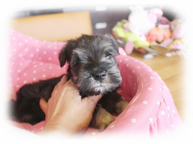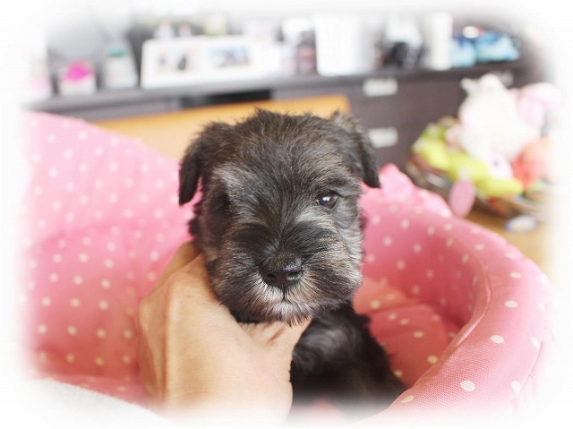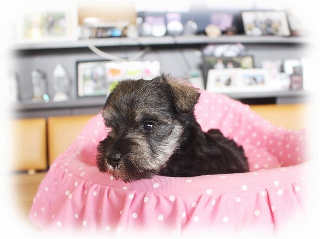 シュナウザーを主力にされているブリーダーさんだと認識しており、ボスちゃんはどうかなあと正直不安でしたがとても可愛く健康的なボスちゃんをいただきました。 掲載されていた写真より実物は想像以上に可愛くて即決し見学させていただいたその日に連れて帰りました。連絡をして、翌日行きますぅって勝手な申し出にも関わらず敏速かつ親切に対応して頂き大満足です。契約に対しても一つ一つ丁寧に説明してくださり、わかりやすかったです。この度は可愛いボスちゃんとのご縁をいただき、本当に有り難うございました。 (大阪府 女性)